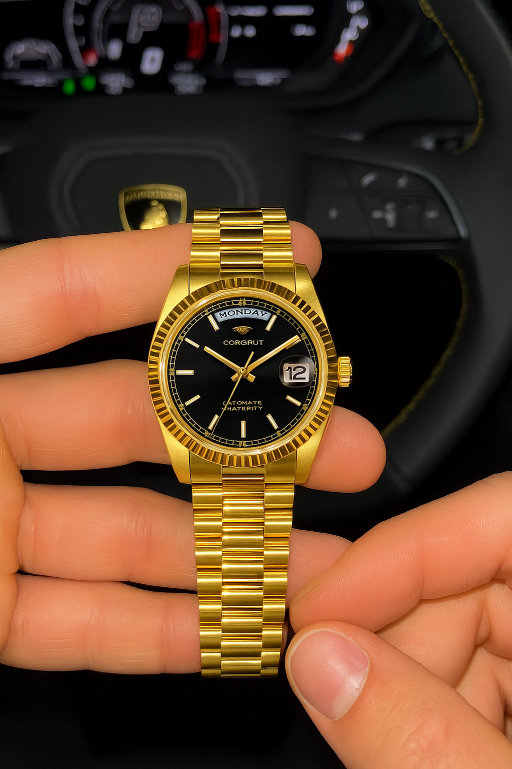 The day and date display is super useful. You can tell this isn’t some cheap knockoff — it has real weight and presence. Everyone keeps asking what brand it is.